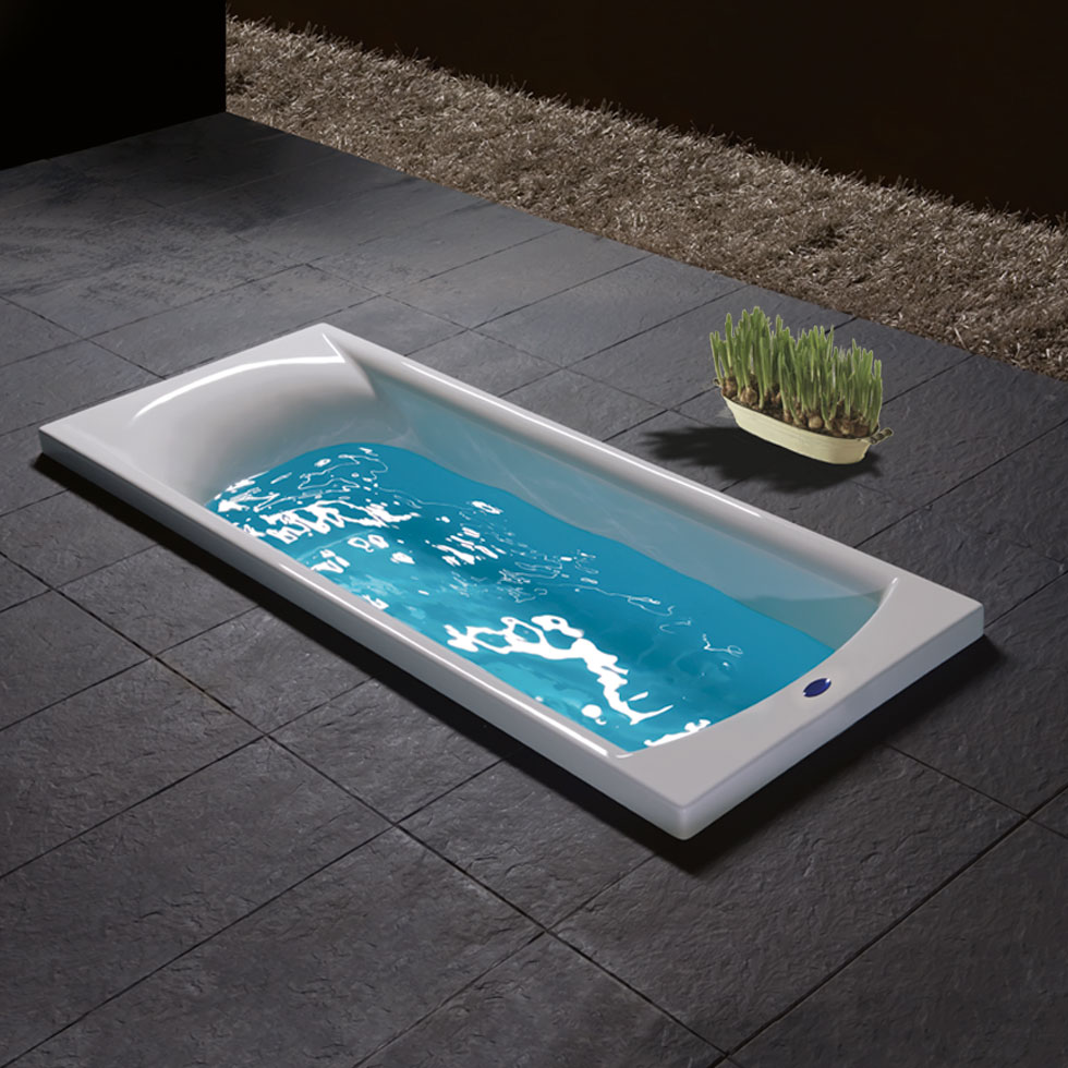 Ένθετη λευκή ακρυλική μπανιέρα απλή ή με ενίσχυση carronite.Διατίθεται σε διαστάσεις 140Χ70εκ.,150Χ70 εκ.,160Χ70 εκ.,170Χ70 εκ., με ή χωρίς λαβές.