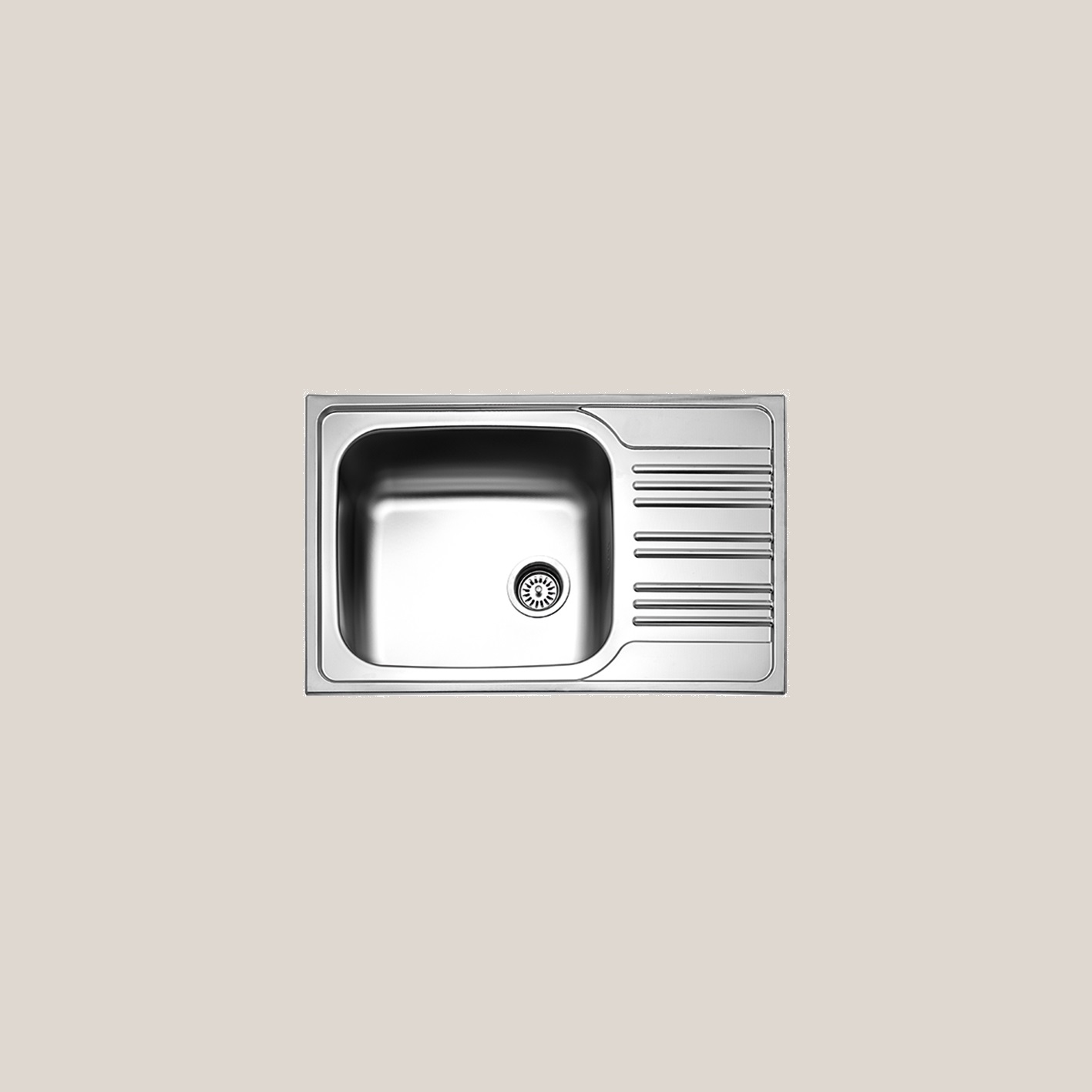 Ένθετος ανοξείδωτος νεροχύτης διατίθεται σε διάσταση 78X50 εκ. με βάθος 18 εκ. για τοποθέτηση σε ερμάριο 60 εκ. Διατίθεται σε λεία επιφάνεια.Αντιστρεφόμενος. Άνοιγμα οπής για μπαταρία κατόπιν ζήτησης. Συμπεριλαμβάνονται βαλβίδες, σωληνώσεις & λιποσυλλέκτης