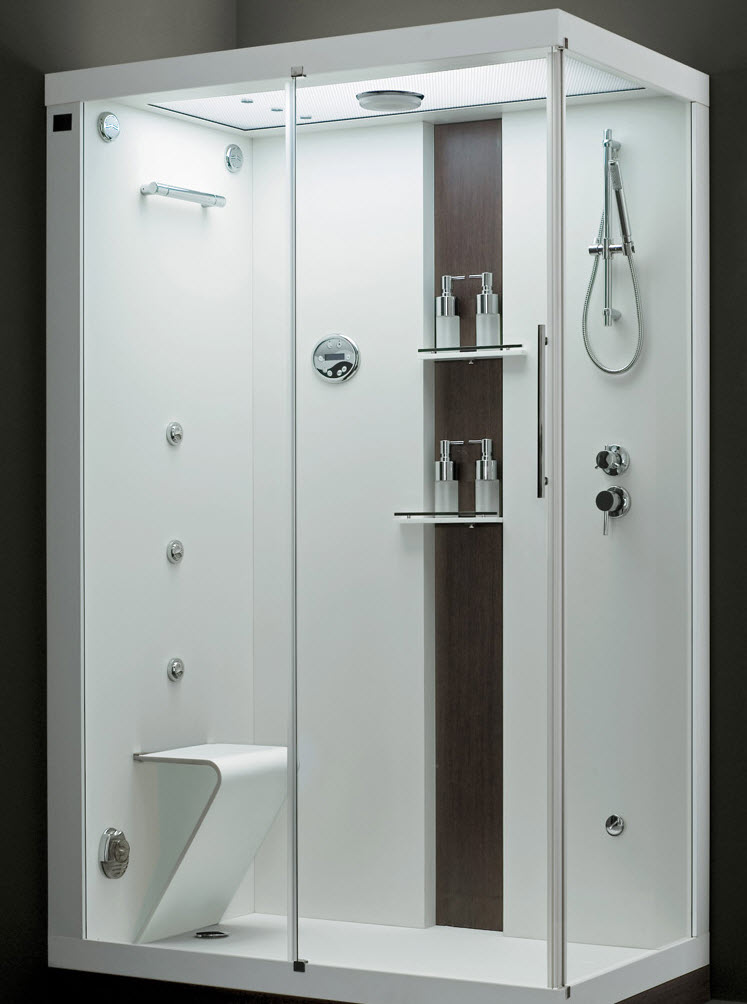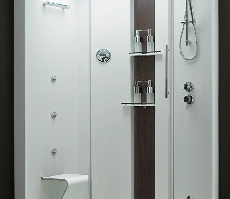Η καμπίνα είναι κατασκευασμένη από διπλά φύλλα αλουμινίου , ενισχυμένα με πολυουρεθάνη.Ανθεκτικά σε κύρτωση-στρέβλωση σε νερό και ατμό.Διαθέσιμα χρώματα λευκό , φυσικό,wemge,παλαιωμένο μέταλλο.Πάχος υλικού 8 mm.