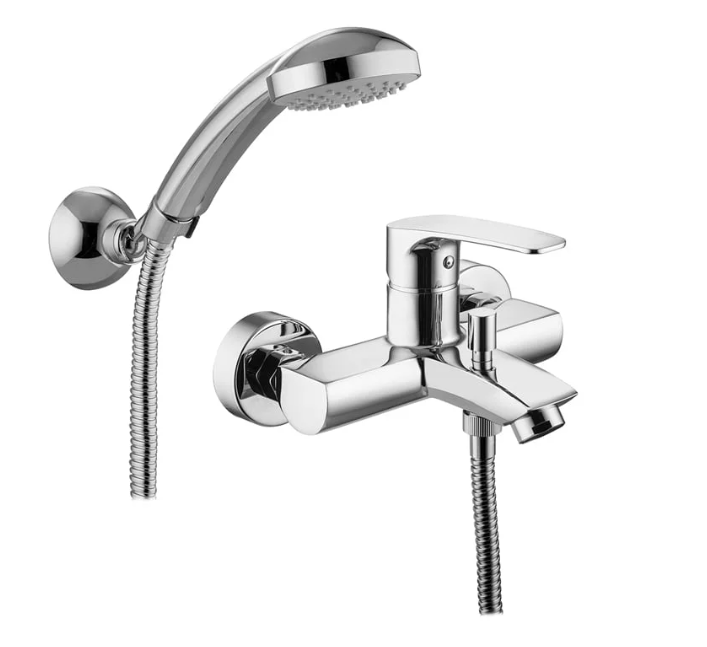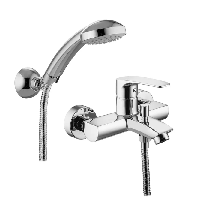 Μπαταρία λουτρού χρωμέ με τηλέφωνο στήριγμα και σπιραλ .