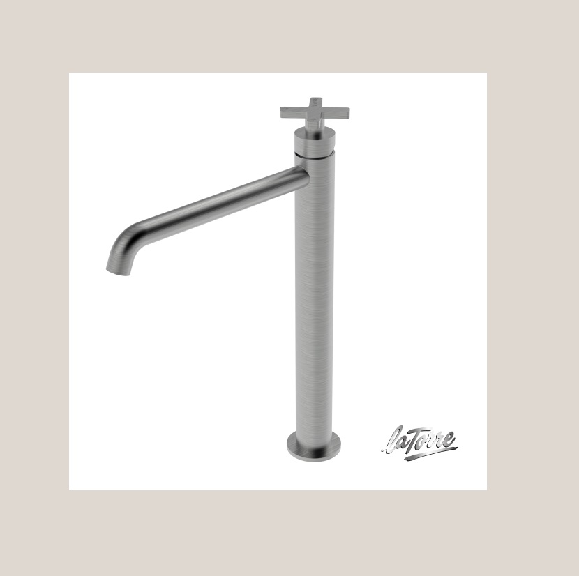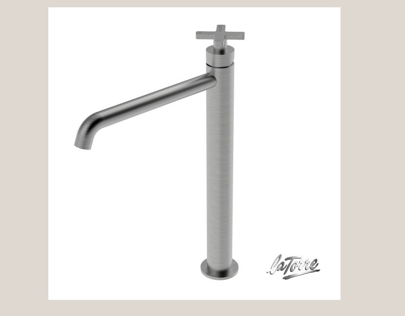 Μπαταρία νιπτήρος θερμομικτική inox finish ELLE CROSS υψηλή για επιτραπέζιους νιπτήρες, με βαλβίδα clic-clac,