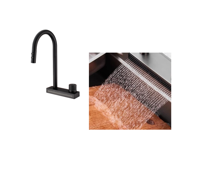 Μπαταρία κουζίνας με αποσπώμενο ντουζ και καταρράχτη.