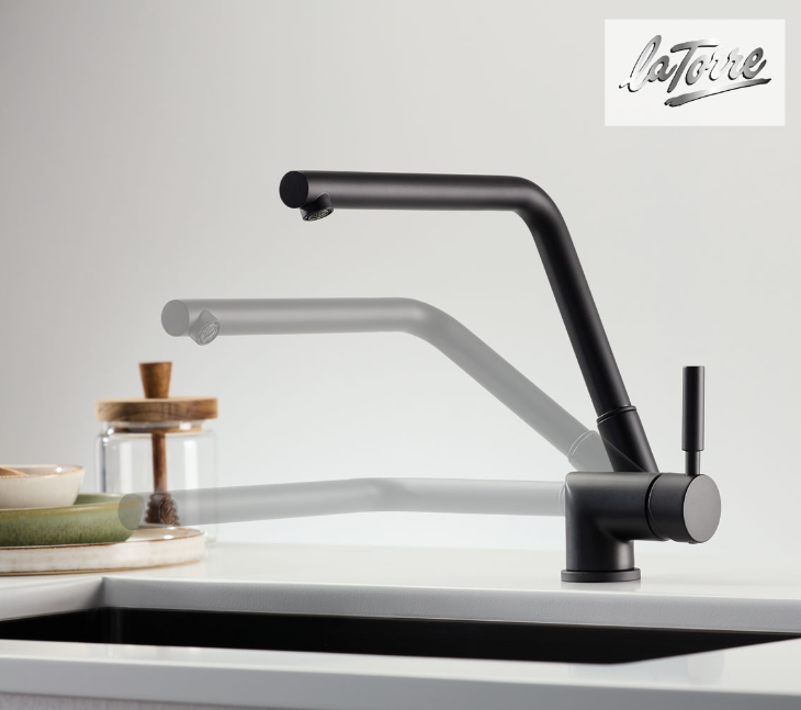 Μπαταρία κουζίνας μαύρη ματ θερμομικτική με ανακλινόμενο ρουξούνι (ελάχιστο ύψος 7εκ) για χρήση κάτω από παράθυρο.Διατίθεται και σε χρωμέ.
