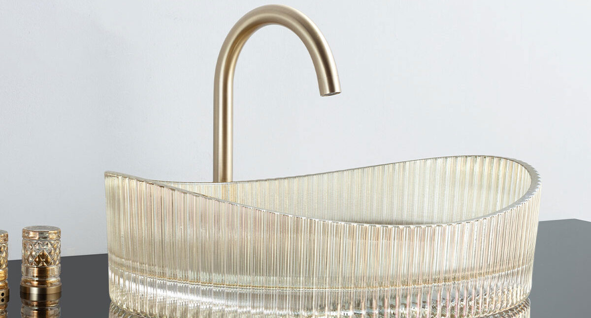 Γυάλινος νιπτήρας χρώμα gold 50×37.5 cm